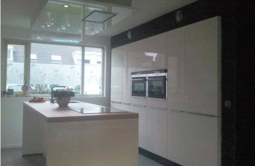 Leidingwerk en Installatie keuken / koof boven eiland gemaakt t.b.v. spots en afzuiger